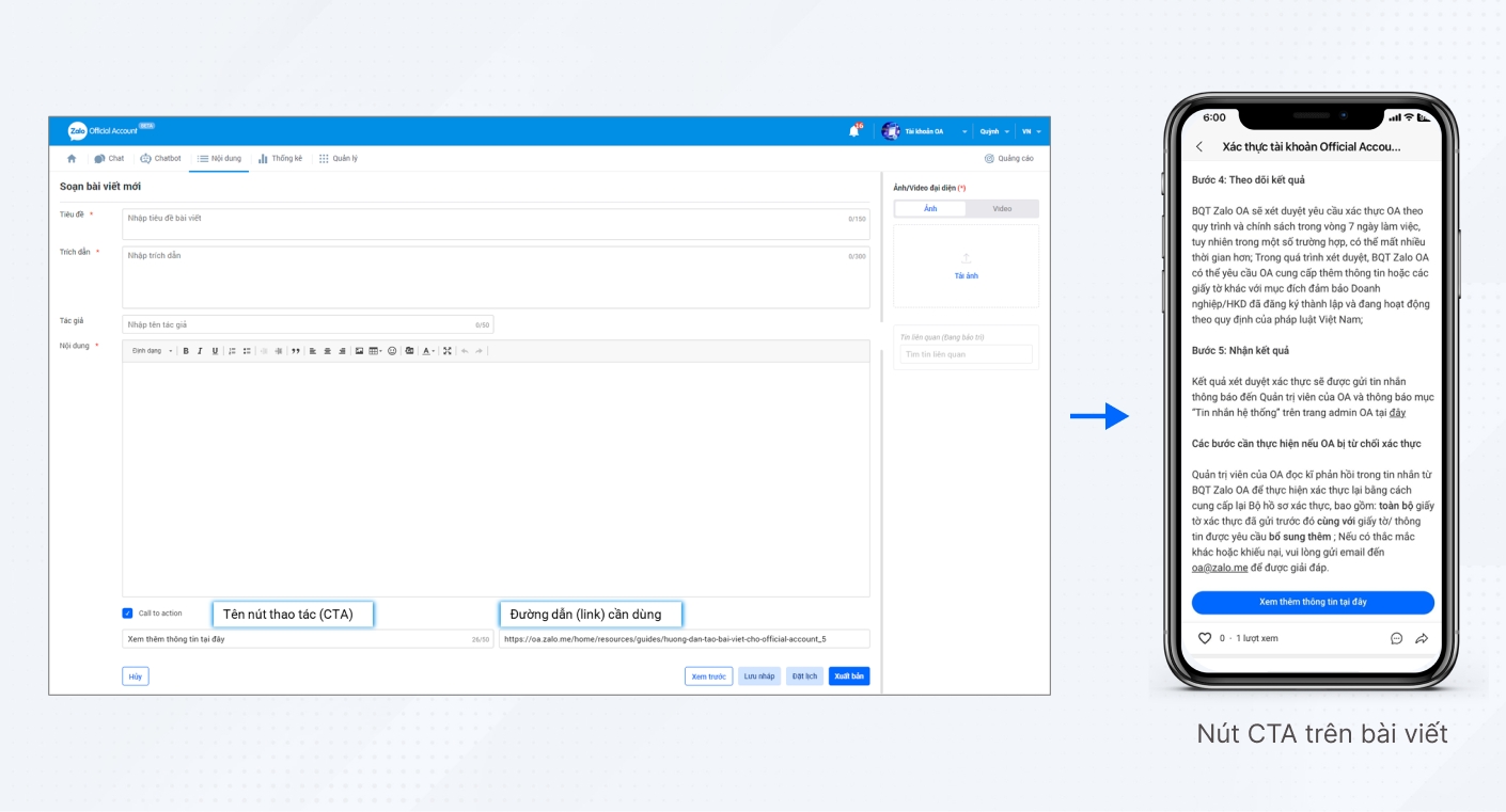 Bài viết là công cụ giúp OA truyền tải những tin tức sản phẩm, dịch vụ, dự án mới nhất đến khách hàng và được hiển thị trên trang thông tin OA.