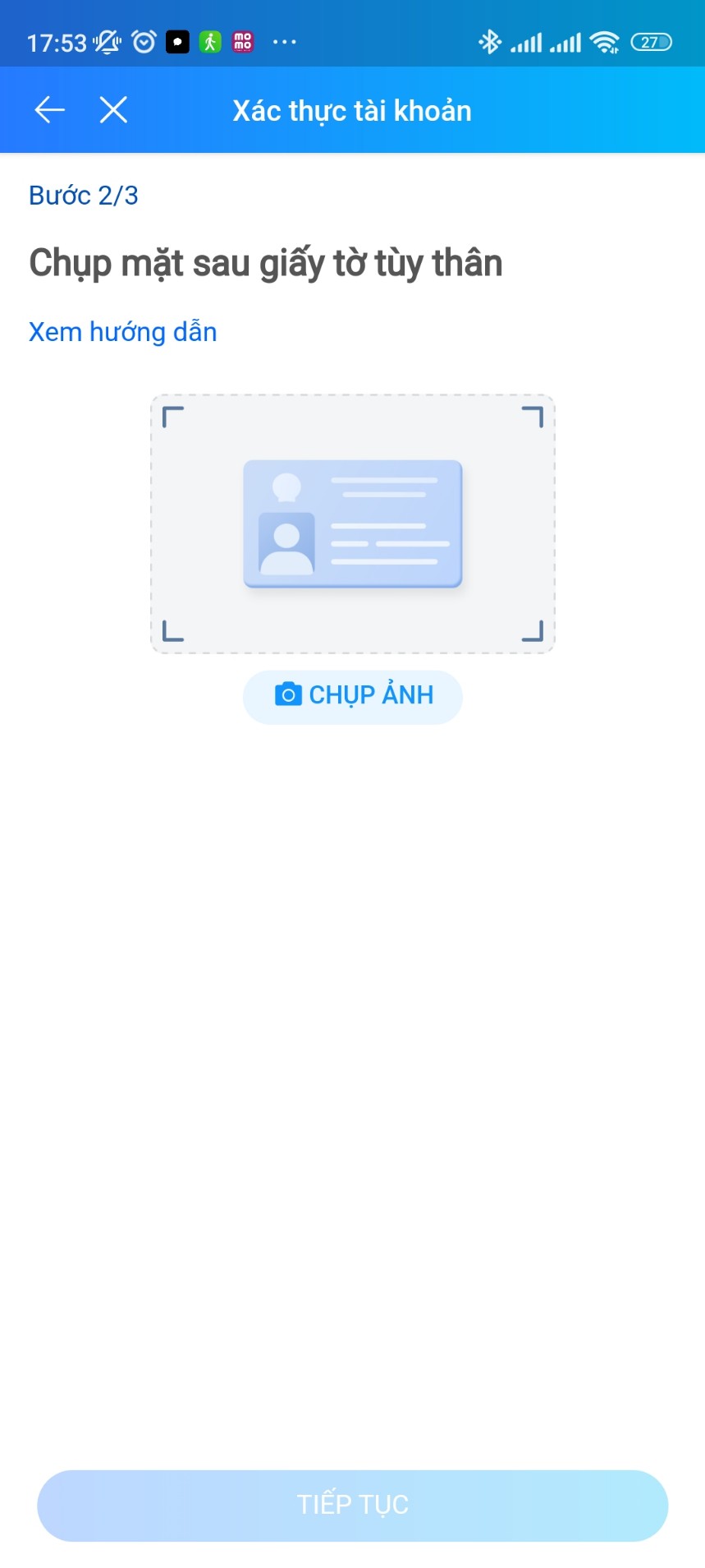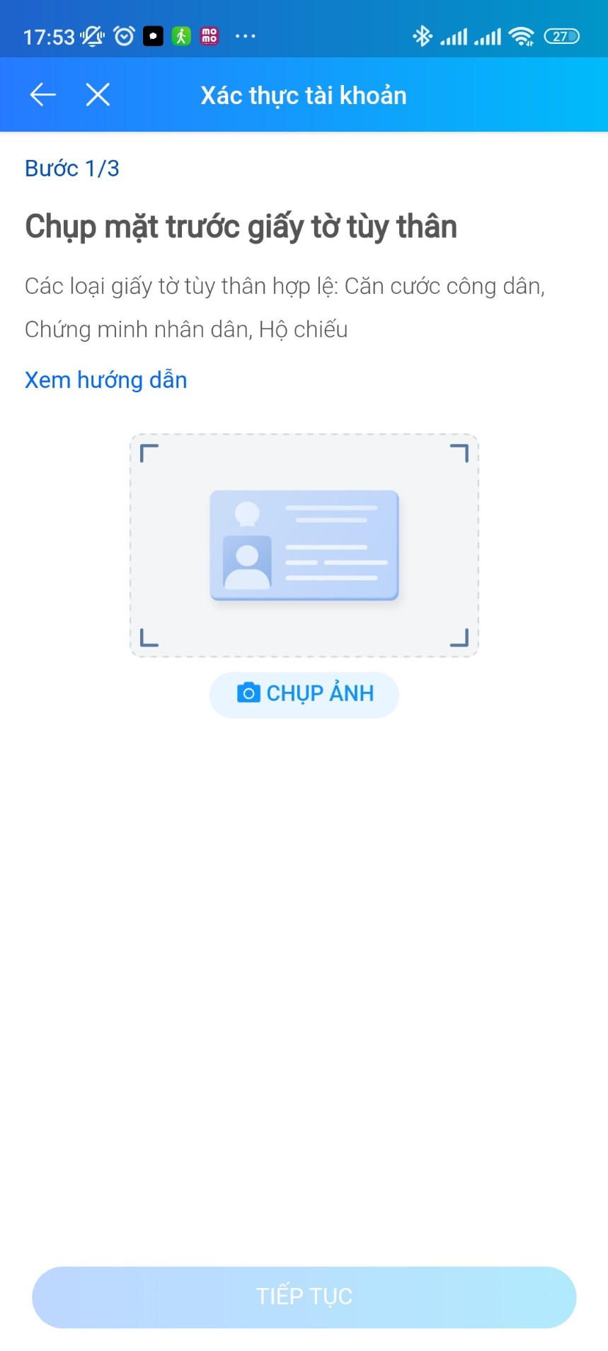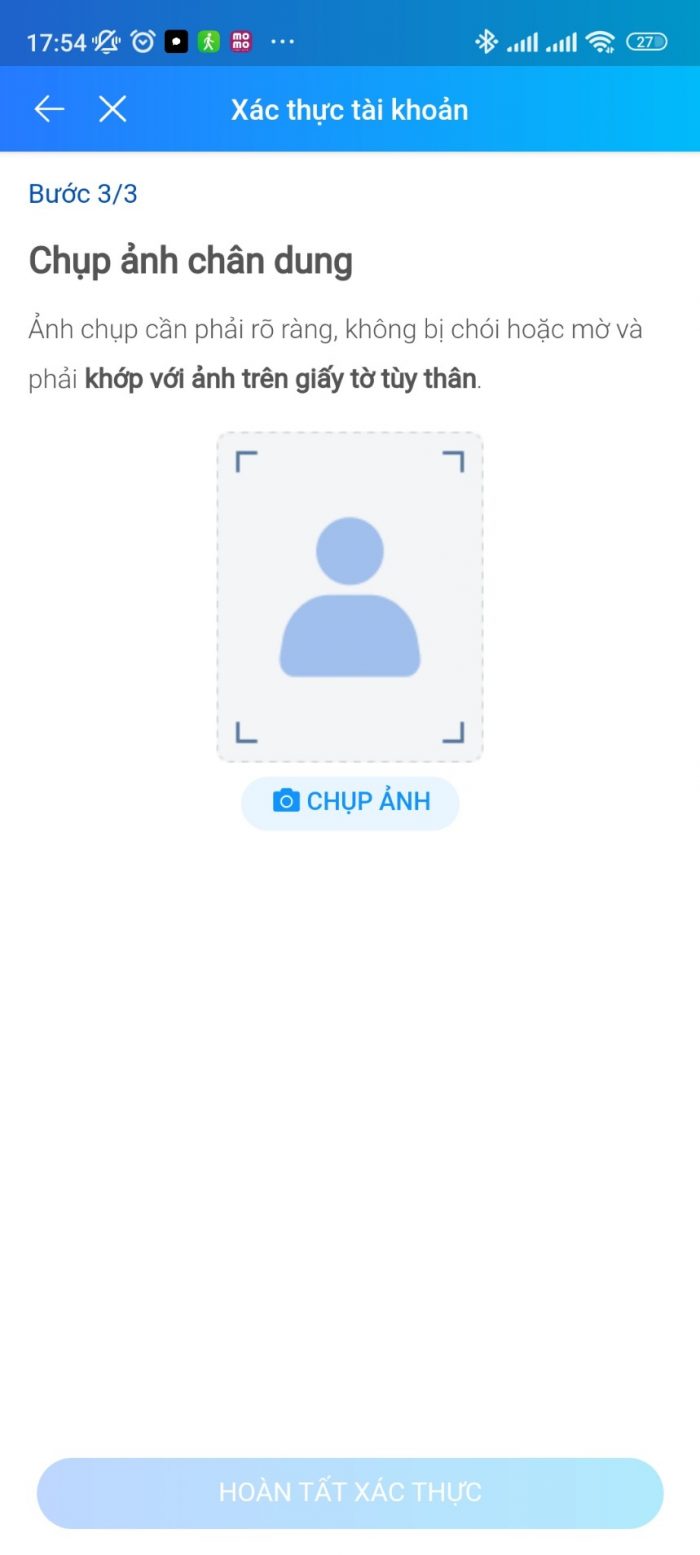 Bước 2: Chụp ảnh chân dung (selfie) rõ mặt để xác thực thông tin cá nhân