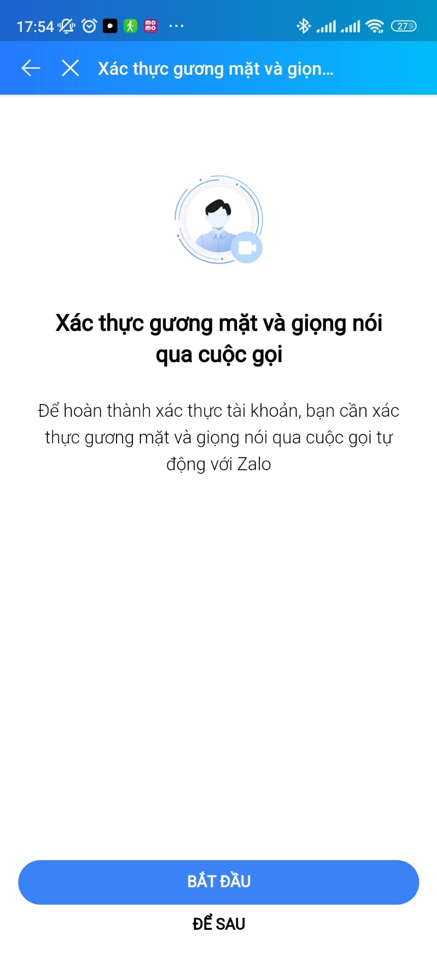 Để hoàn thành xác thực tài khoản, nhà quảng cáo cần xác thực gương mặt và giọng nói qua cuộc gọi tự động với Zalo >> Nhấn Bắt đầu.
